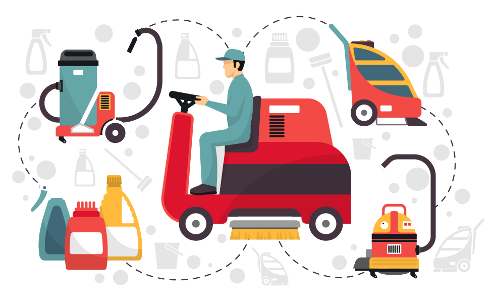 Cung cấp máy móc, dụng cụ vệ sinh chuyên nghiệp, các hóa chất chính hãng, rõ nguồn gốc, đảm bảo chất lượng cho công trình.