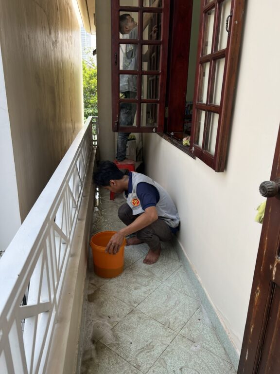 + Lau chùi ban công, hệ thống cửa sổ, cửa ra vào, cầu thang ….