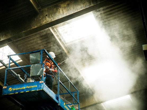 - Vệ sinh hệ thống đường ống trên cao, vệ sinh máy móc trong nhà xưởng.